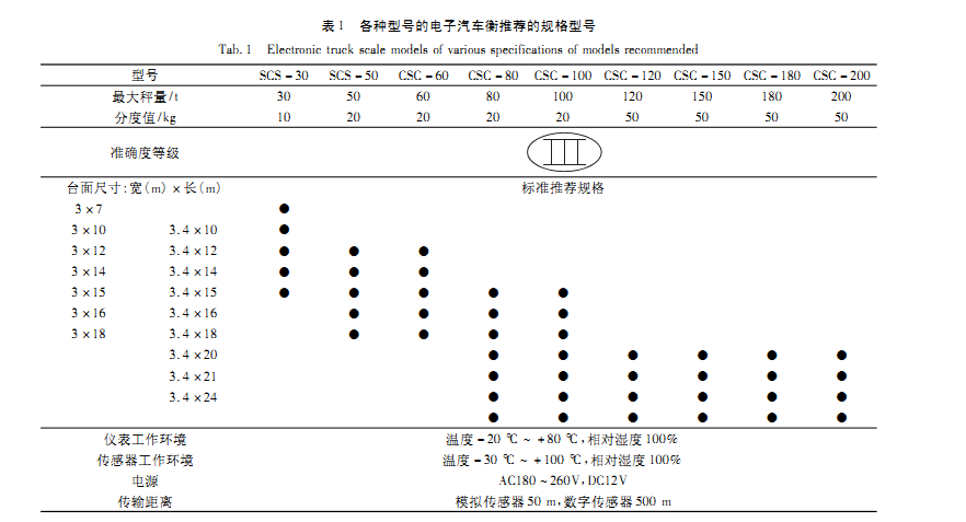 表1列出了公司常用廠家各種信號地磅的基本參數和技術指標,選型時需要考慮以下幾點因素:最大秤量、未來可能增加的過磅車輛載貨量、稱重車型和安裝地磅地基空間,以此進行選型,以保證物體穩妥、方便地放在秤臺上,根據需要選擇地磅的規格型號。