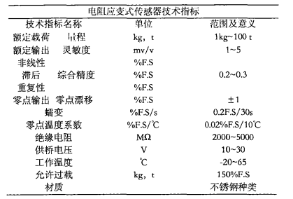 三、稱重傳感器的技術指標